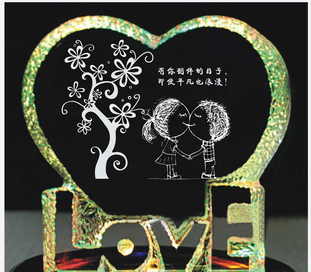 2. 灯饰行业、饰品行业等透明材质内部雕刻LOGO、名字、文字、标识和图案等。